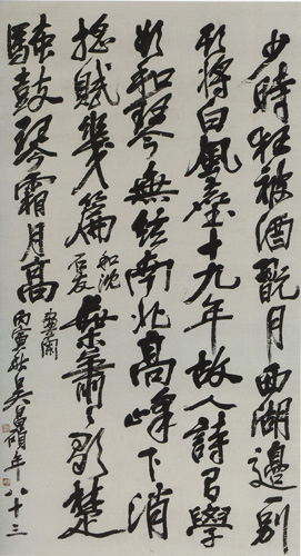 中国近代の書画家、篆刻家。詩・書・画・篆刻ともに精通し、「四絶」と称賛され、中国近代でもっとも優れた芸術家と賞賛されている。初名は俊、のちに昌碩と称した。浙江省安吉の人。 名家に生まれるが、17歳の時に太平天国の乱に巻き込まれ、一家離散の憂き目に遭って湖北・安徽省を流亡。しかし苦しい生活のなかでも勉学は怠らず、篆刻や文字訓詁を熱心に学んだ。 29歳になると杭州・蘇州・上海等に出て、広く師友を求める。仕官を望まず、学を深めながら大勢の師友を得たことで、識見を広め、書へも領域を広げて技量を伸ばしていった。 以後、書や篆刻を売りながら細々と生計を立てたが、50歳に至って任伯年に師事し、本格的に画を学ぶ。やがて上海の富裕層が彼の画を好んで買い始め、その名が世に知られ始めた。 日本でも長尾雨山や河井 廬によって紹介され、大正11年に大阪高島屋で展観が行われてからは書画愛好家の間でも関心が高まり、「中国最後の文人」として広く注目を集めた。 |